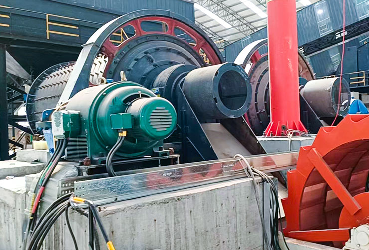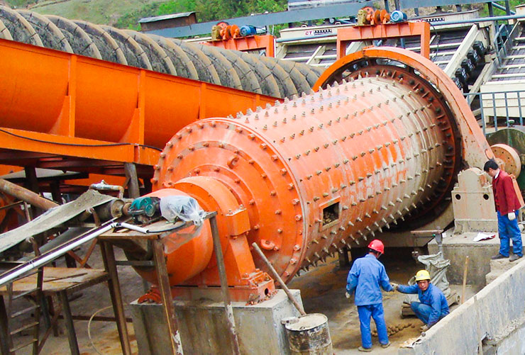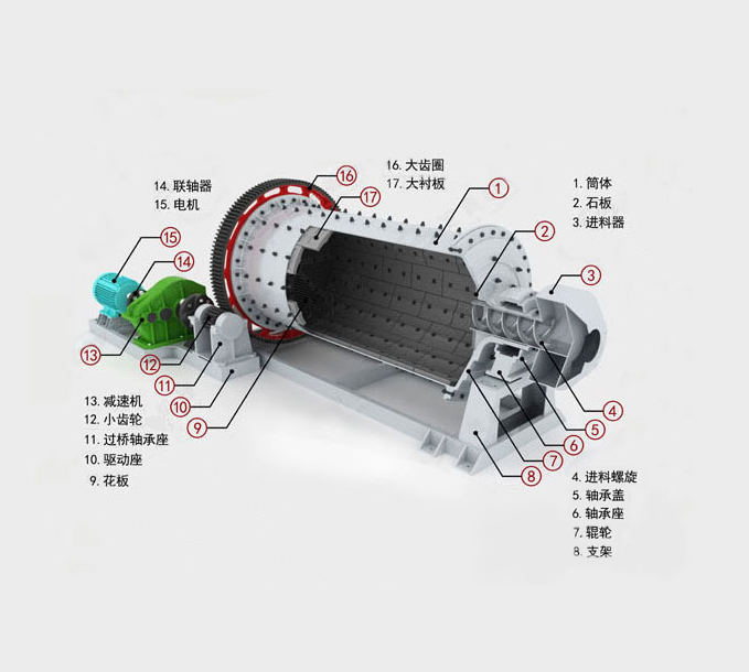 球磨機由給料部、出料部、回轉部、傳動部(減速機、小傳動齒輪、電機、電控)等主要部分組成。中空軸采用鑄鋼件,內襯可拆換,回轉大齒輪采用鑄件滾齒加工,筒體內鑲有耐磨襯板,具有良好的耐磨性,本機運轉平穩,性能可靠,根據物料及排礦方式,可選擇干式球磨機和濕式球磨機。
